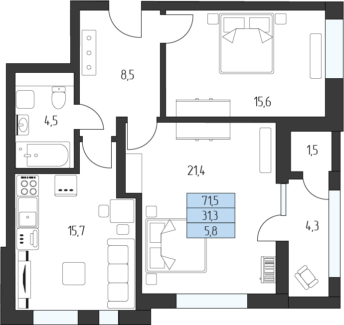 Все объекты имеют статус полноценных квартир и подходят под все виды ипотеки, в том числе льготную, семейную, военную, для IT специалистов и с использованием материнского капитала